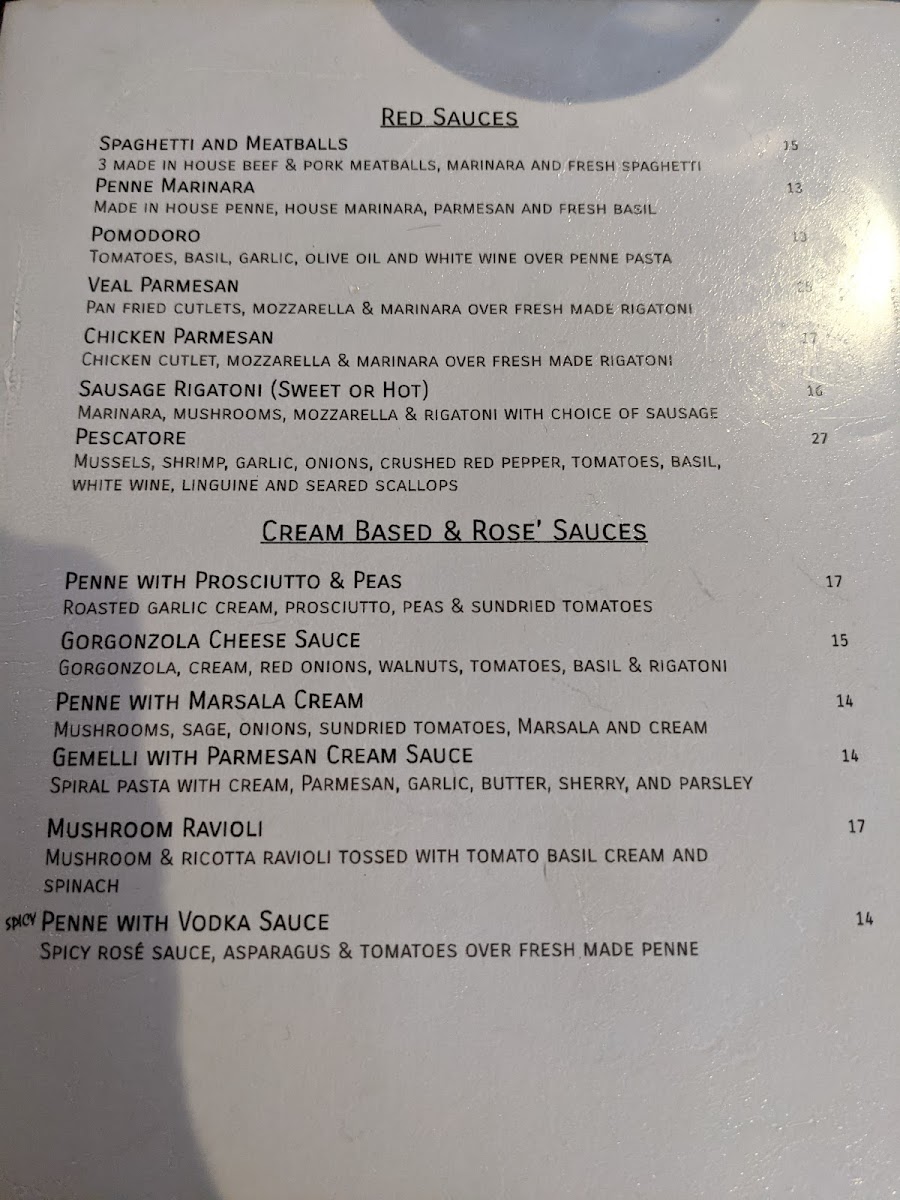 Ziti tossed with ricotta, mozzarella, marinara then baked and finished with parmesan and herbs
