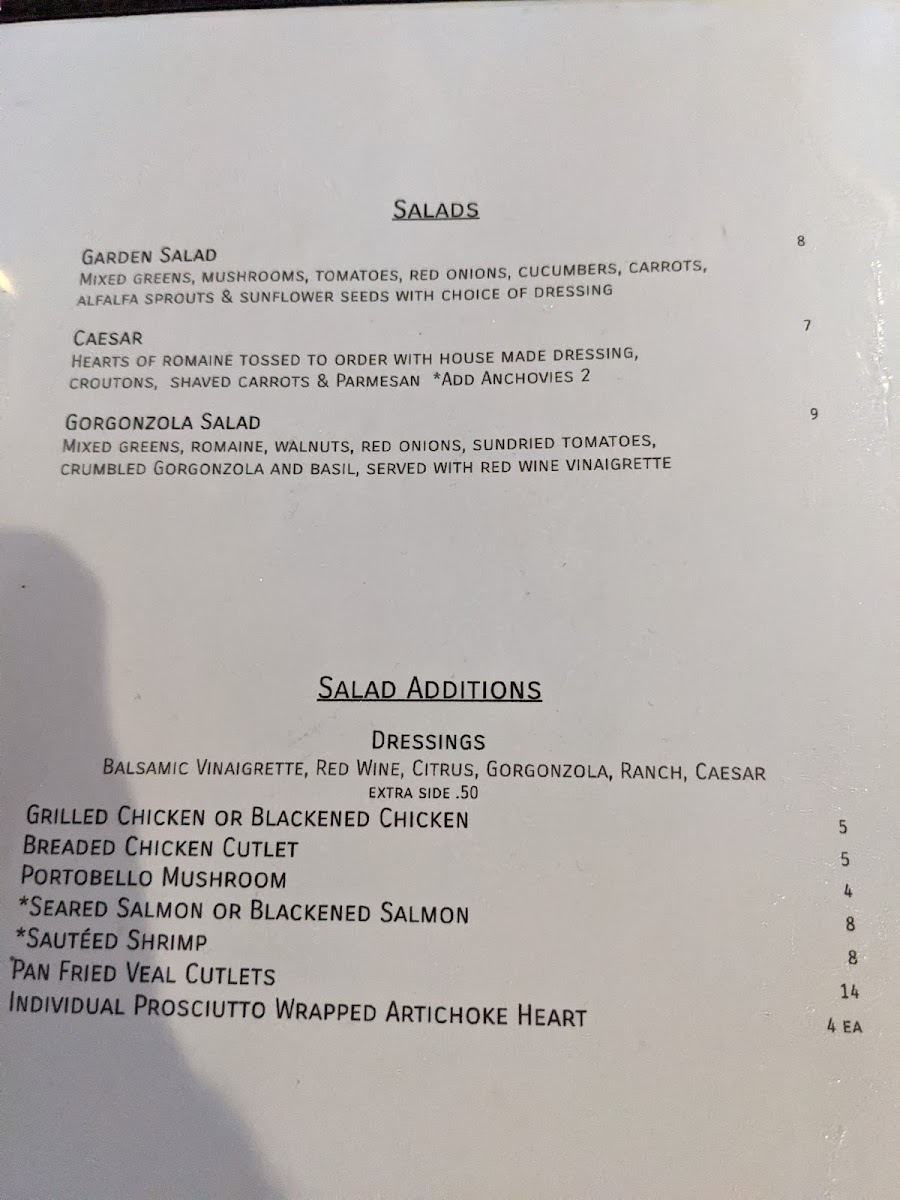 Mixed Greens, walnuts, red onions, sundried tomatoes and gorgonzola cheese with red wine vinaigrette